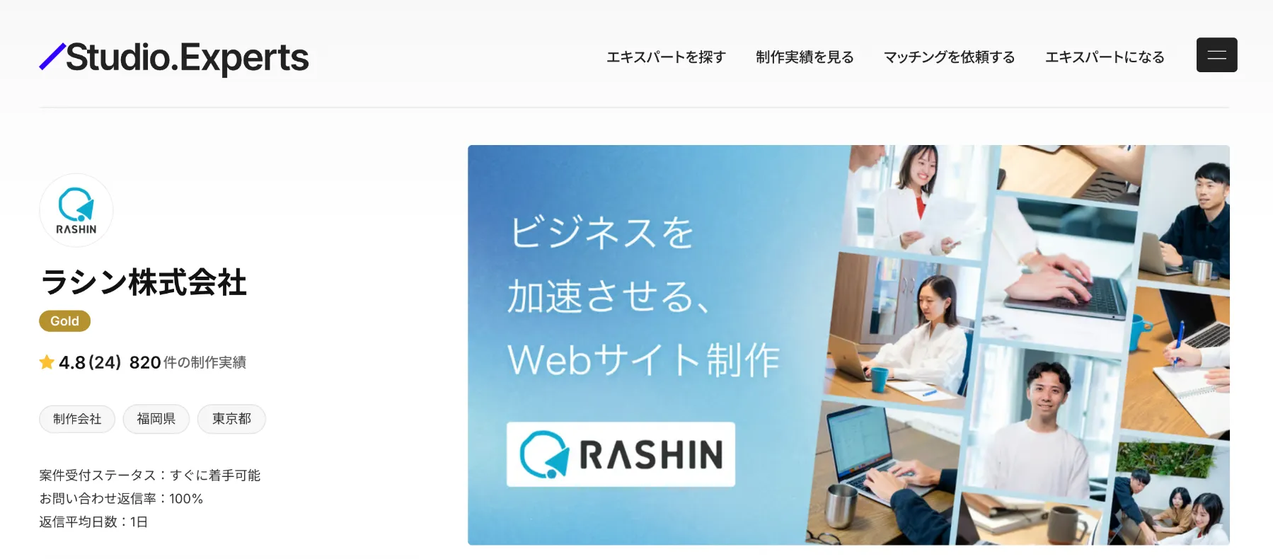 Studio社公式のStudio Gold Experts認定企業であり、700サイト以上の制作実績No.1を誇ります。